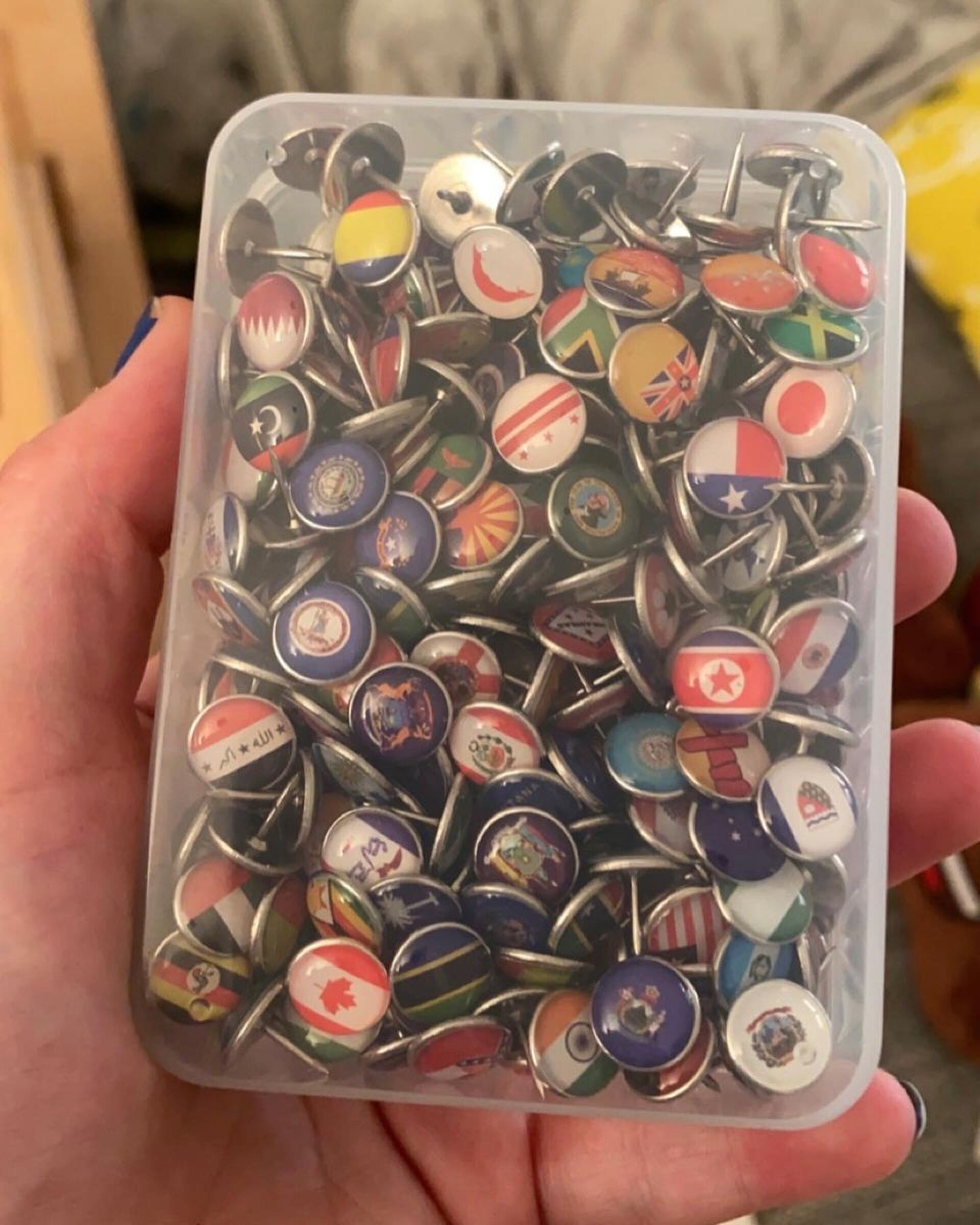 Pionezele cu steagurile țărilor pot fi folosite pentru a marca locurile pe care le-ați vizitat sau pe care doriți să le vizitați.